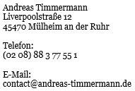 Diese Datenschutzerklärung soll die Nutzer dieser Website über die Art, den Umfang und den Zweck der Erhebung und Verwendung personenbezogener Daten durch den Websitebetreiber Andreas Timmermann informieren. Die Kontaktdaten finden Sie am Schluss dieser Seite in Abschnitt 4.