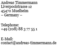 Trotz sorgfältiger inhaltlicher Kontrolle übernehme ich keine Haftung für die Inhalte externer Links. Für den Inhalt der verlinkten Seiten sind ausschließlich deren Betreiber verantwortlich.
